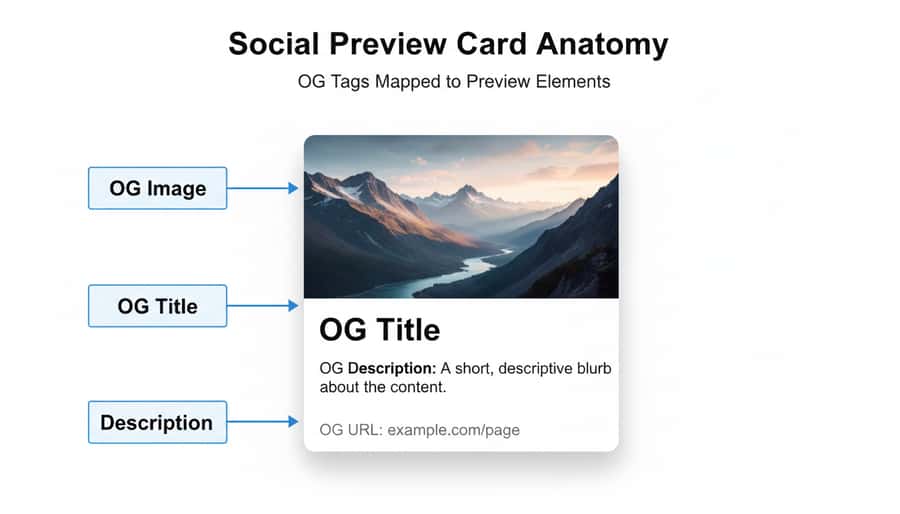 Open Graph tags tell social platforms exactly what to show when your URL is shared.